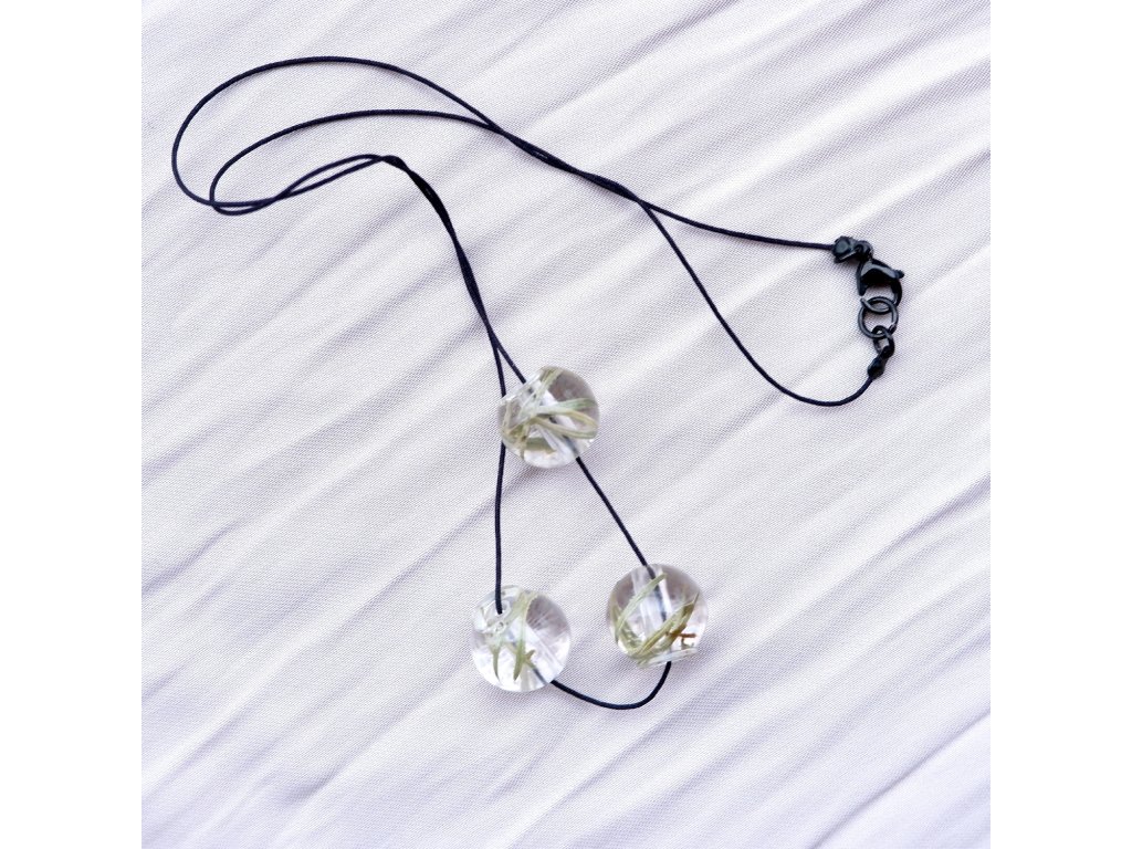 Korálky z epoxidové pryskyřice na bavlněné šňůrce s komponenty z nerezové oceli (304) s Black Ionic povrchovou úpravou.průměr borůvky: 1,2 cmdélka šňůrky: 43 cmpéče