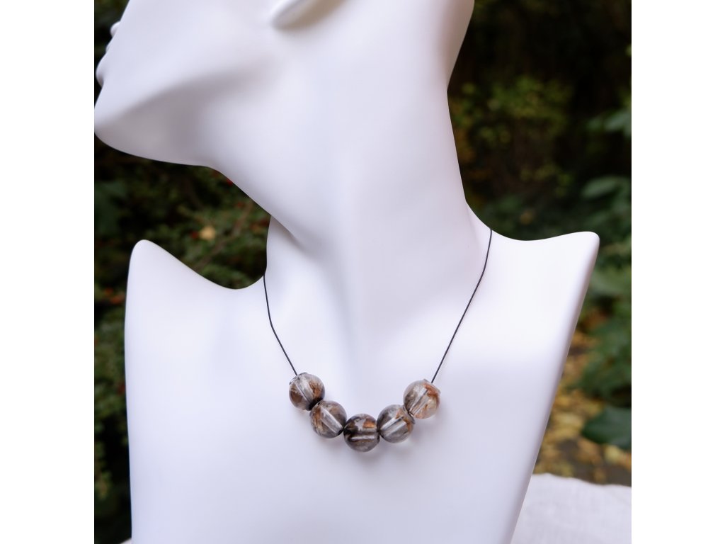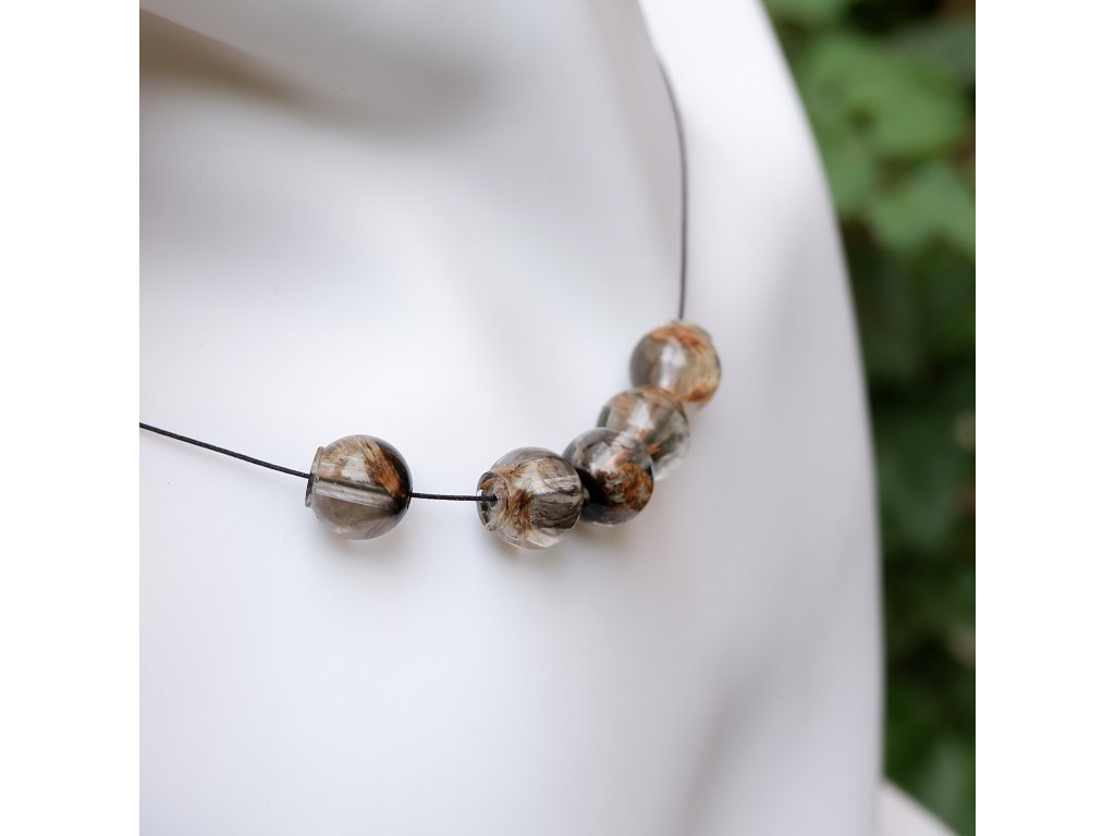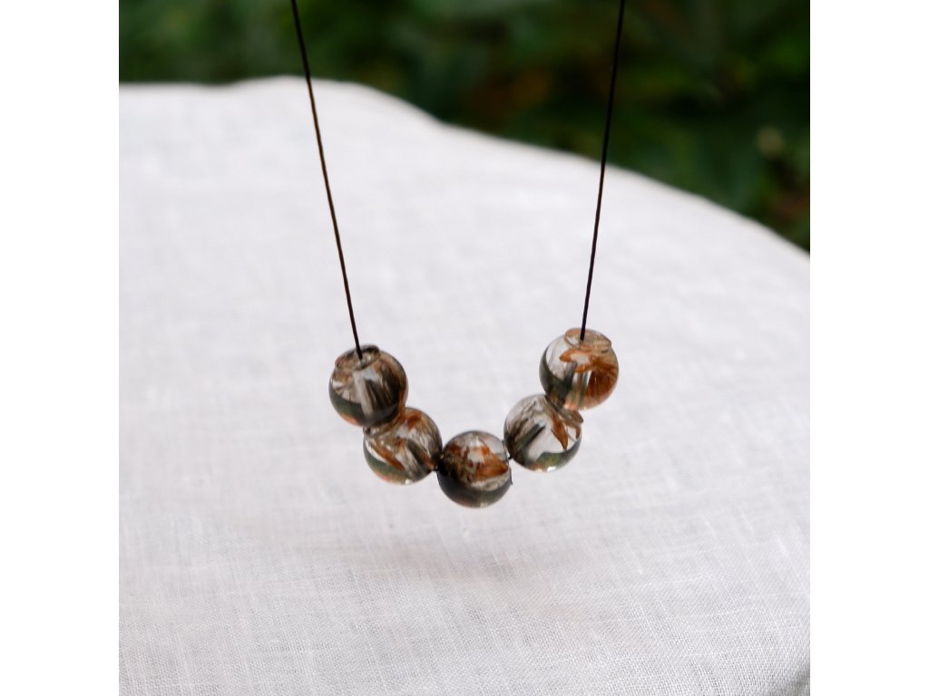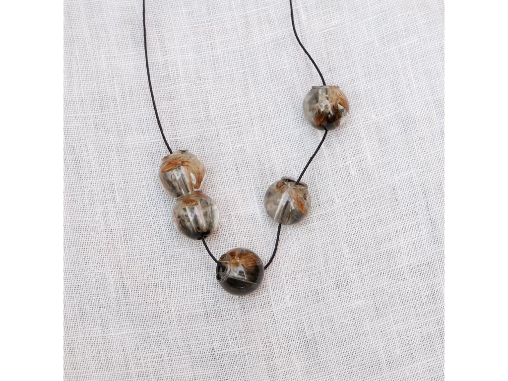 Korálky z epoxidové pryskyřice na bavlněné šňůrce s komponenty z nerezové oceli (304) s Black Ionic povrchovou úpravou.