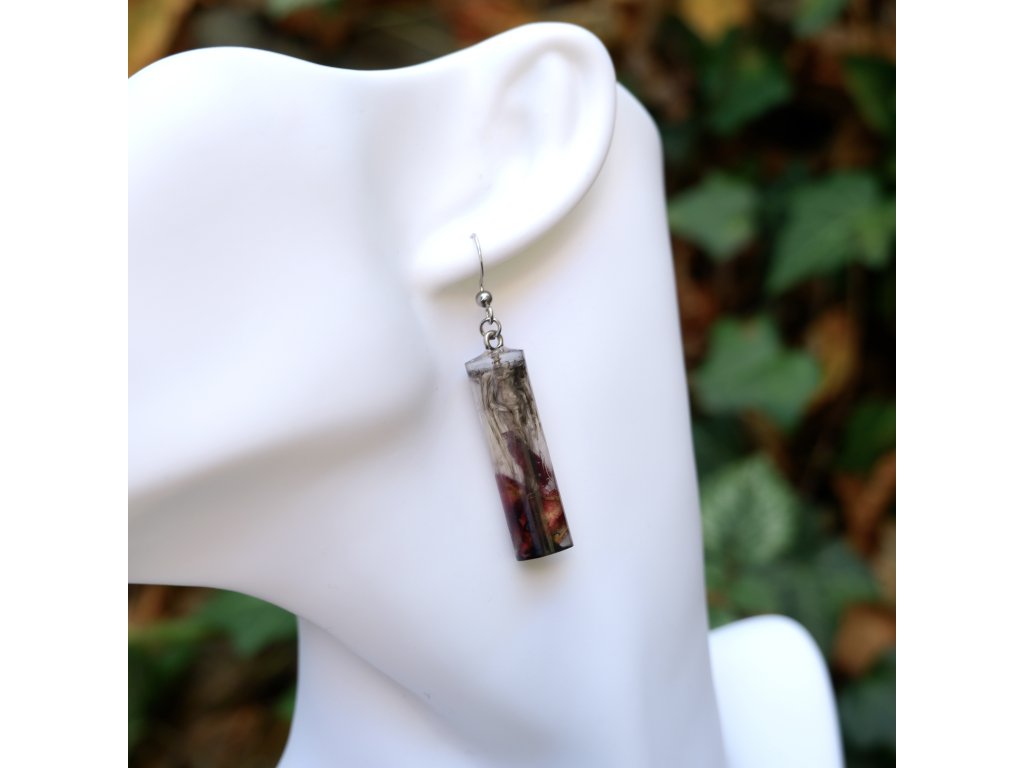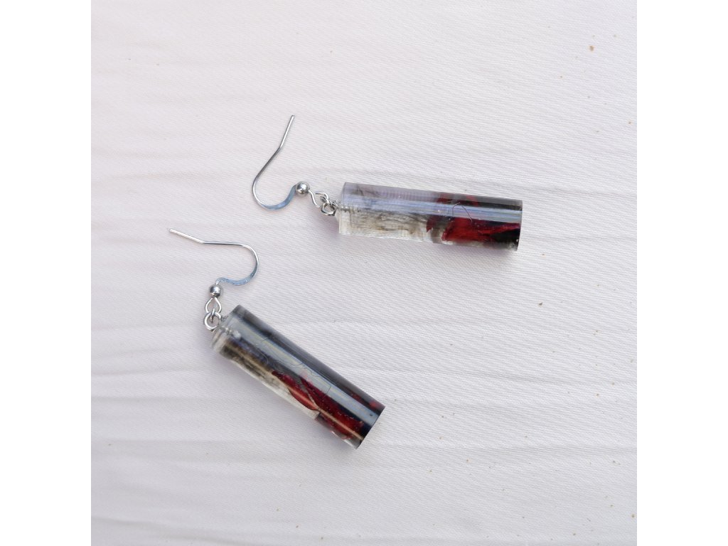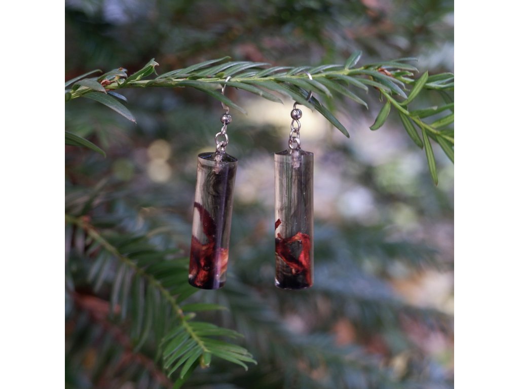 Náušnice z epoxidové pryskyřice s háčky z chirurgické oceli (316).délka 3,5 cm, průměr 1 cm (+ háček)péče